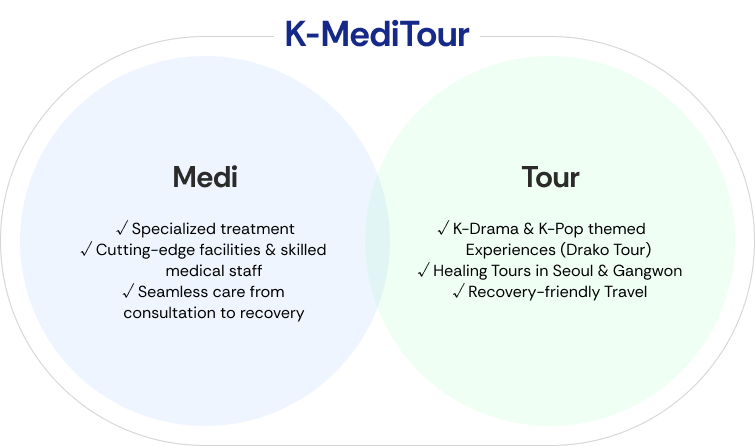 K-MediTour Program is a fully integrated medical travel program designed to make both your treatment and travel in South Korea smooth, safe, and unforgettable.